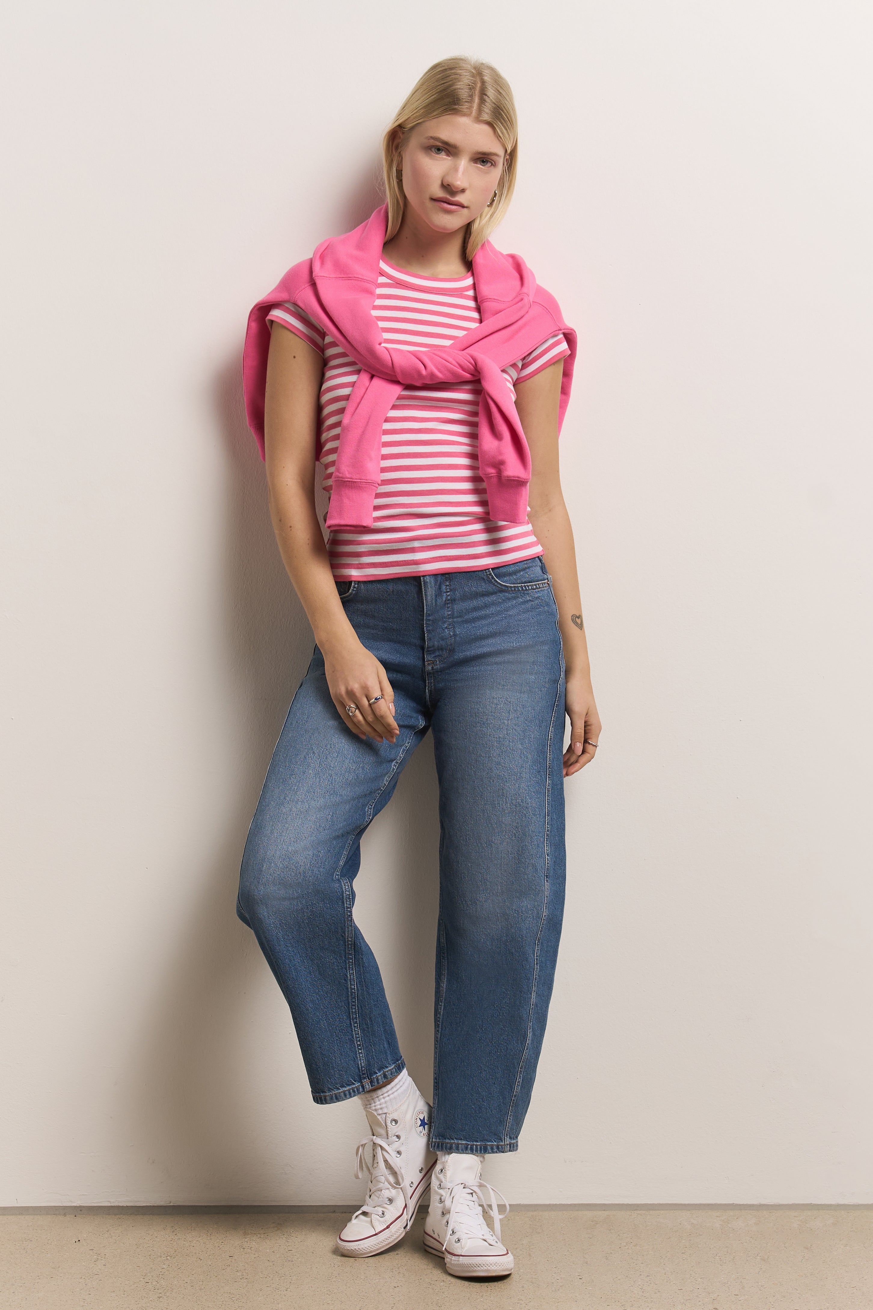 Summer shirts and summer tops are must-haves. They're super versatile and go with almost any summer outfit. A classic white T-shirt or tank top is a real all-rounder - you can wear it with jeans or a skirt. Sleeveless, light, and airy tops are all the rage right now, and they're super comfortable. Whether you go for a basic top, a lace top, or one with off-the-shoulder details, summer tops are great for creating new looks time and time again. They're great on their own or for layering under a blouse or jacket.