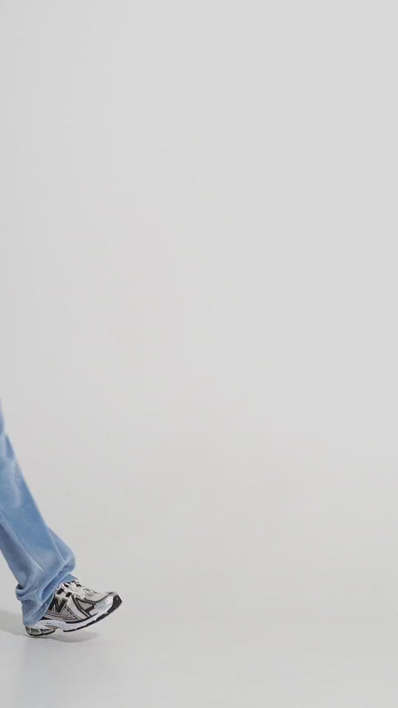 Pantalon de survêtement en velours côtelé doux. Taille élastique avec cordon de serrage. Deux poches latérales. Jambes larges et longues. Inscription « Love » ornée de strass.