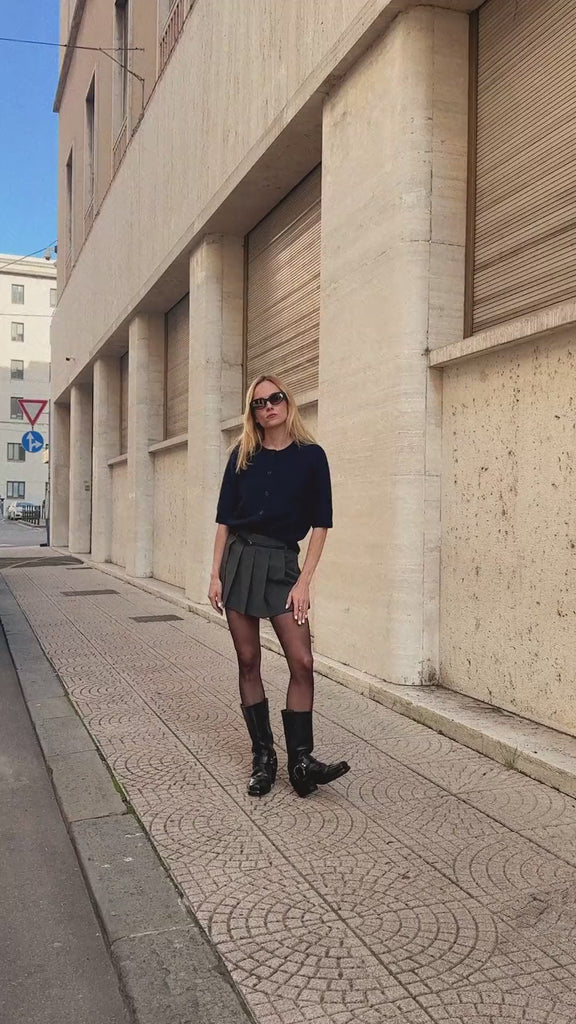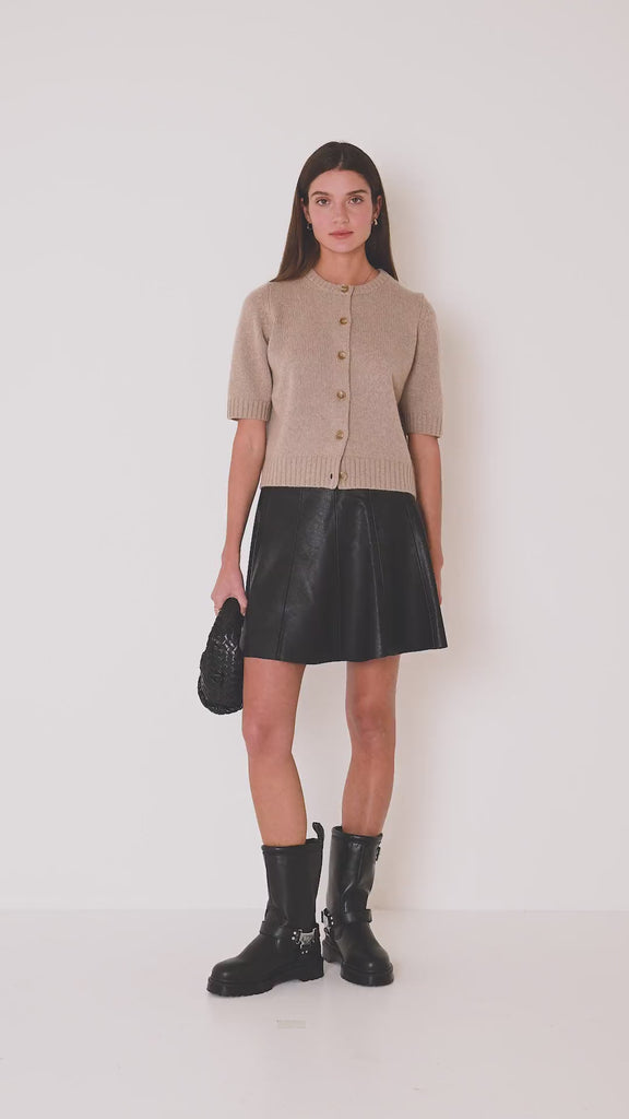 Strickpullover aus 100% Kaschmir mit Rundhalsausschnitt und kurzen Ärmeln. Knopfleiste. Rippungen am Ausschnitt, Bündchen und Saum.