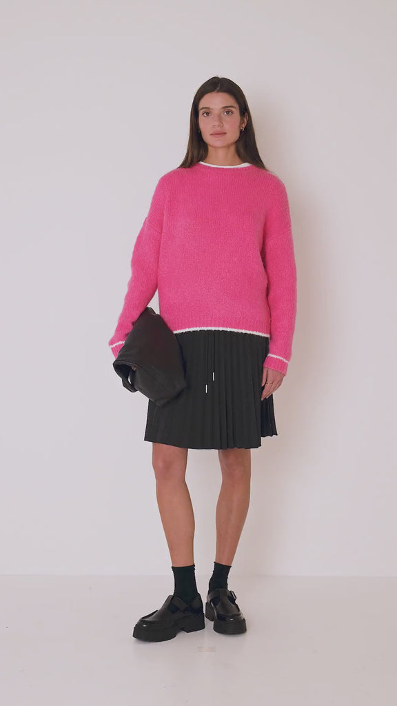 Pinker Grobstrickpullover mit Kontrast