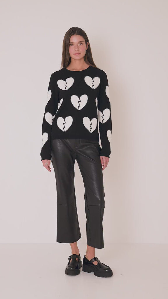 Schwarzer Pullover mit gebrochenen Herzen