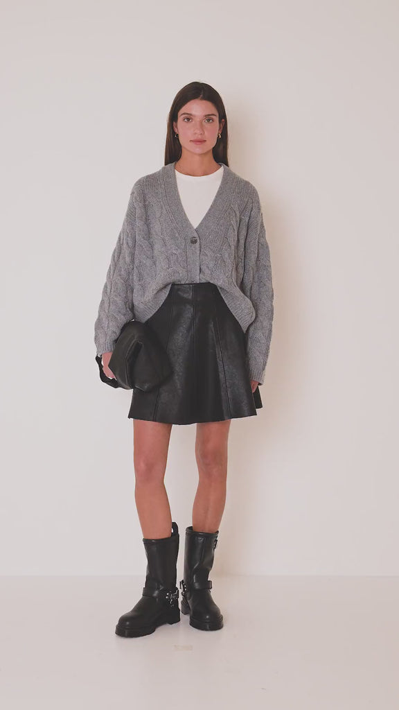 Kurze Strickjacke mit Zopfmuster aus 100% Kaschmir. Cropped Design. Tiefer V-Ausschnitt und lange Ärmel. Rippungen am Bündchen und Saum.